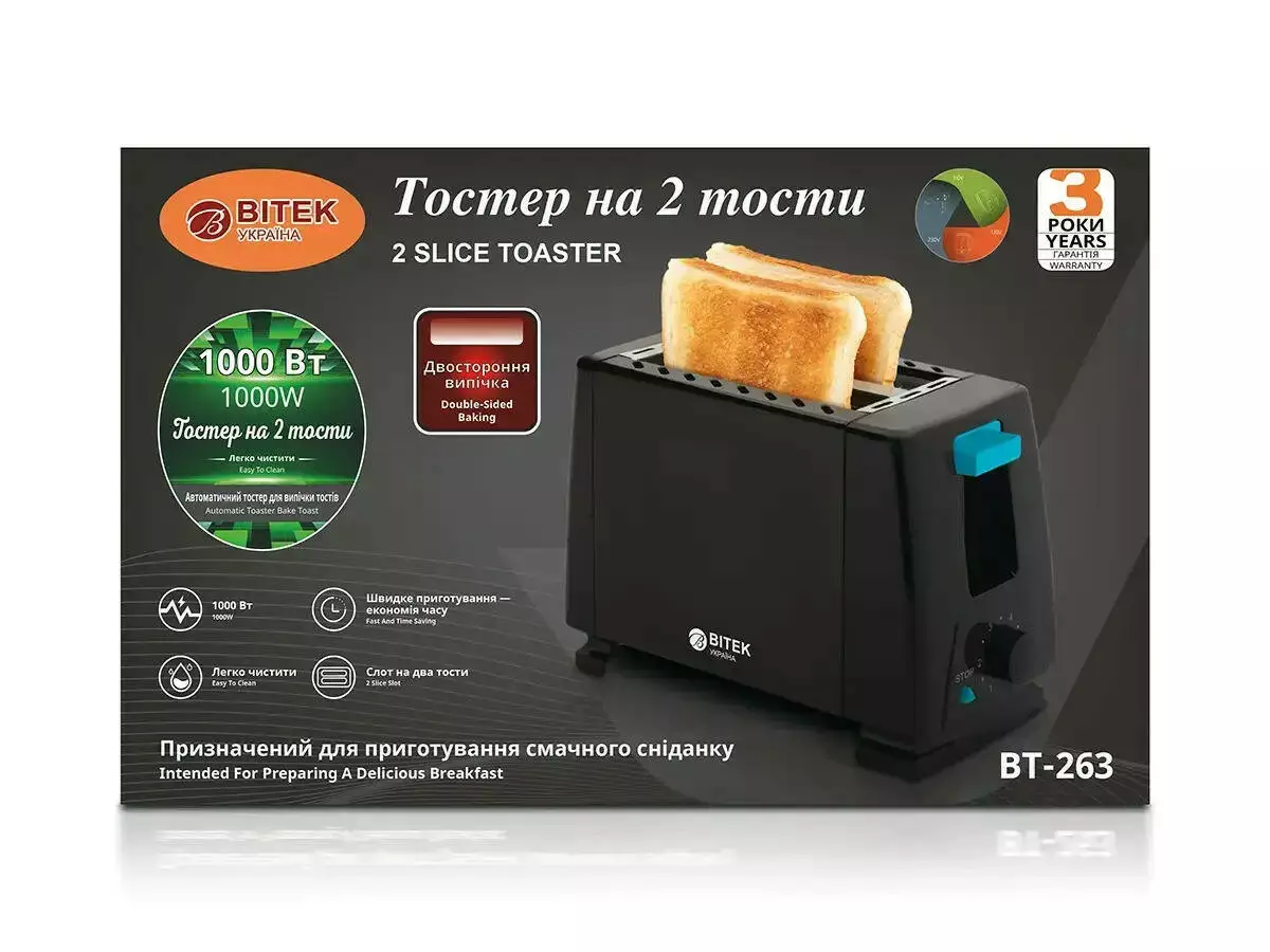 Тостер на 2 тості 1000 Вт 2 Slice Toaster BITEK BT-263/ 6848 (12)