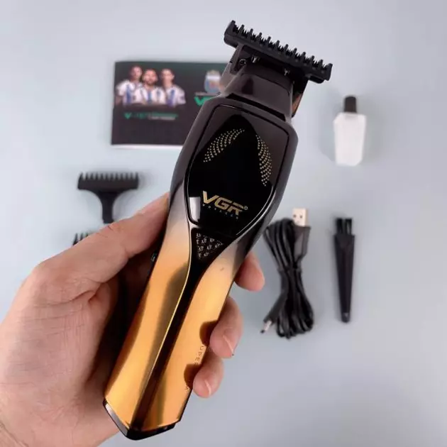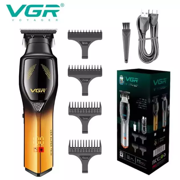 Тример для бороди та вусів з керамічним полотном VGR V-187 зі змінними насадками 1,5-6 (24)