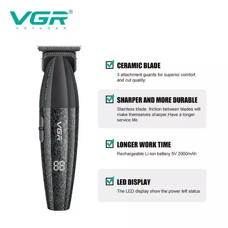 Тример VGR V-640T BLACK, 3 насадки, LED display