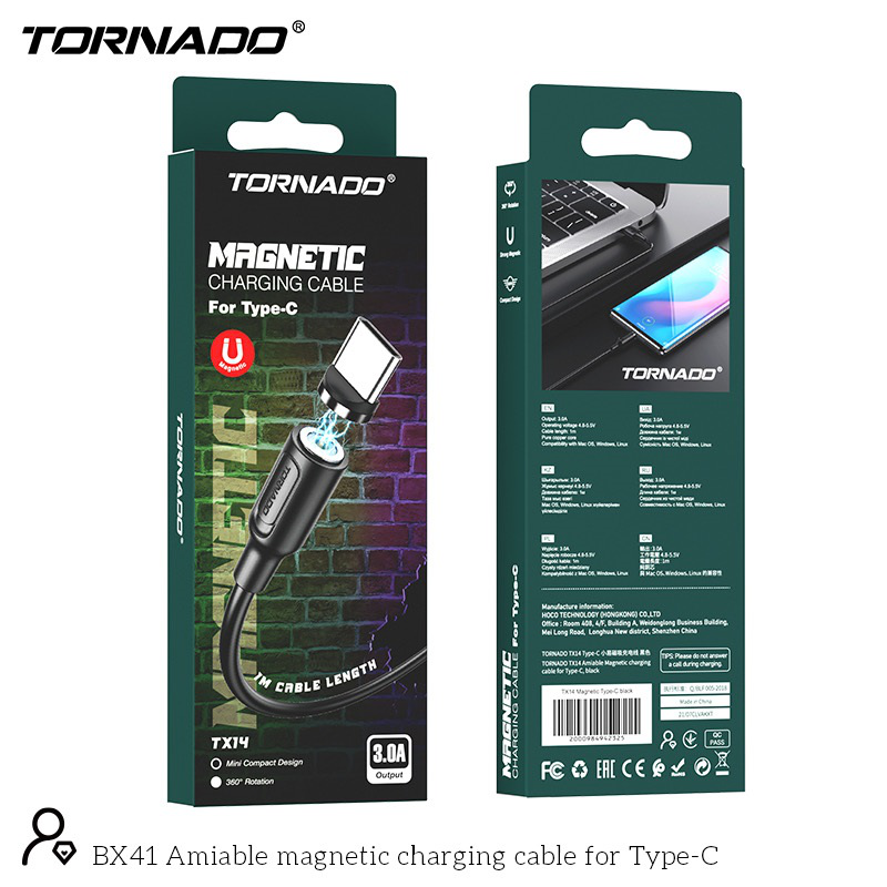 USB-C TORNADO TX14 Magnetic (3A/1m) Type-C black