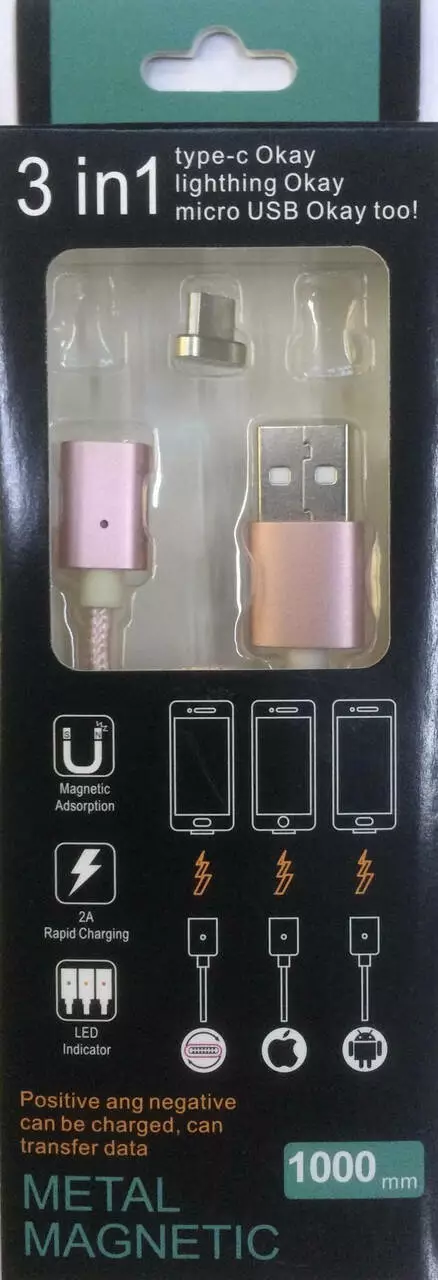 USB-кабель USB/micro METAL MAGNETTIC 1000 mm (400 шт./ящ)