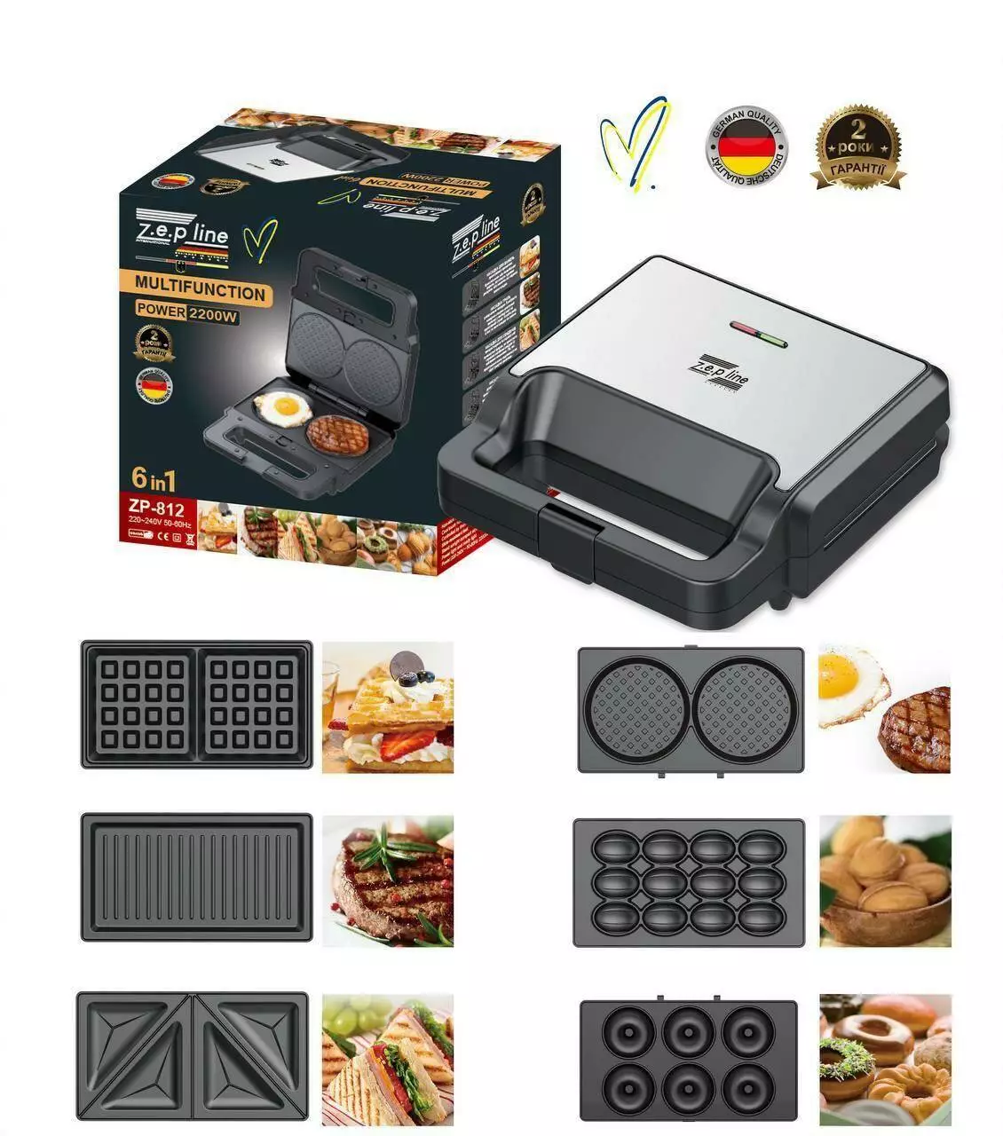 Вафельниця 6в1 2200 Вт Zepline ZP-812 Мультимейкер зі знімними пластинами (6)
