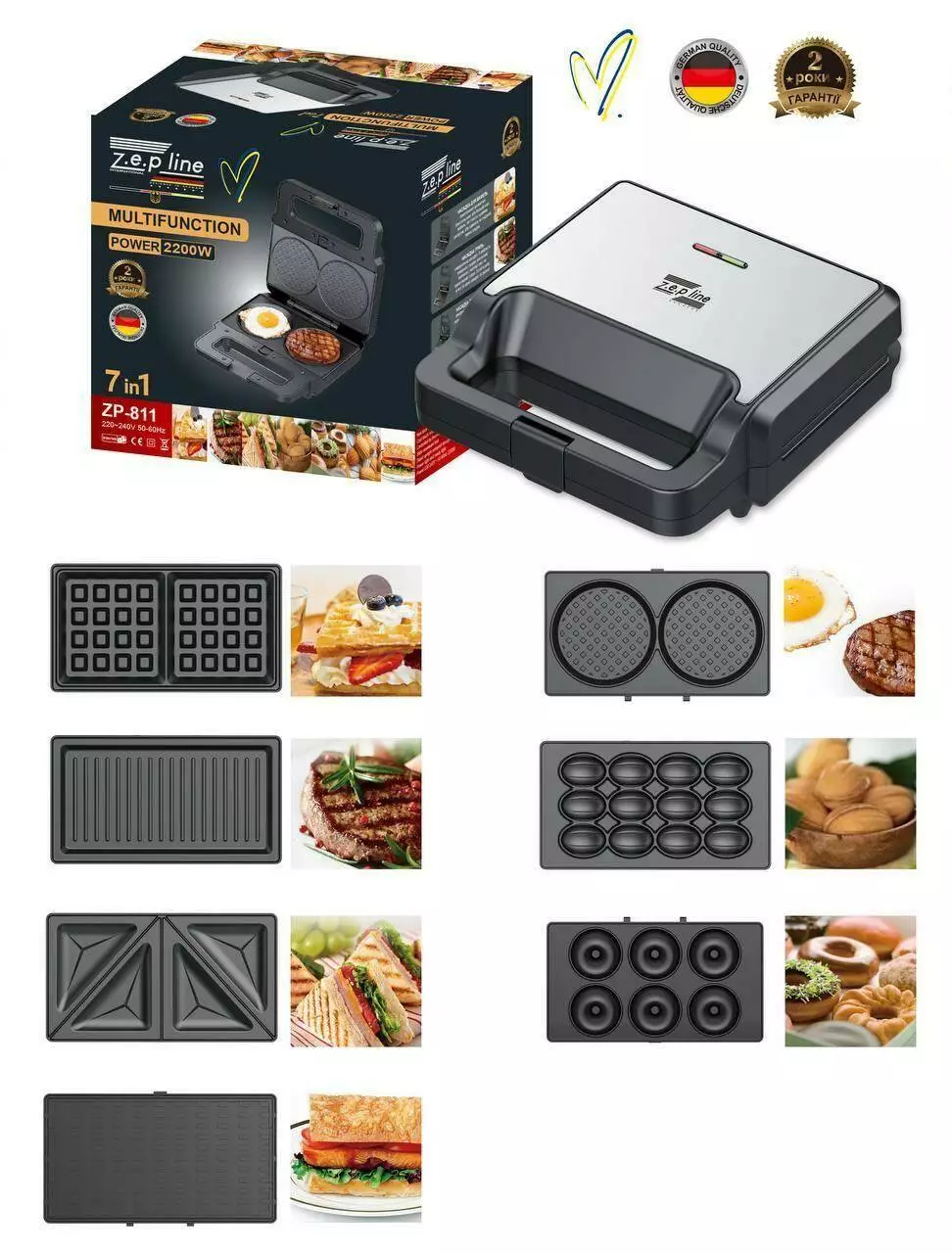 Вафельниця 7в1 2200 Вт Zepline ZP-811 Мультимейкер зі знімними