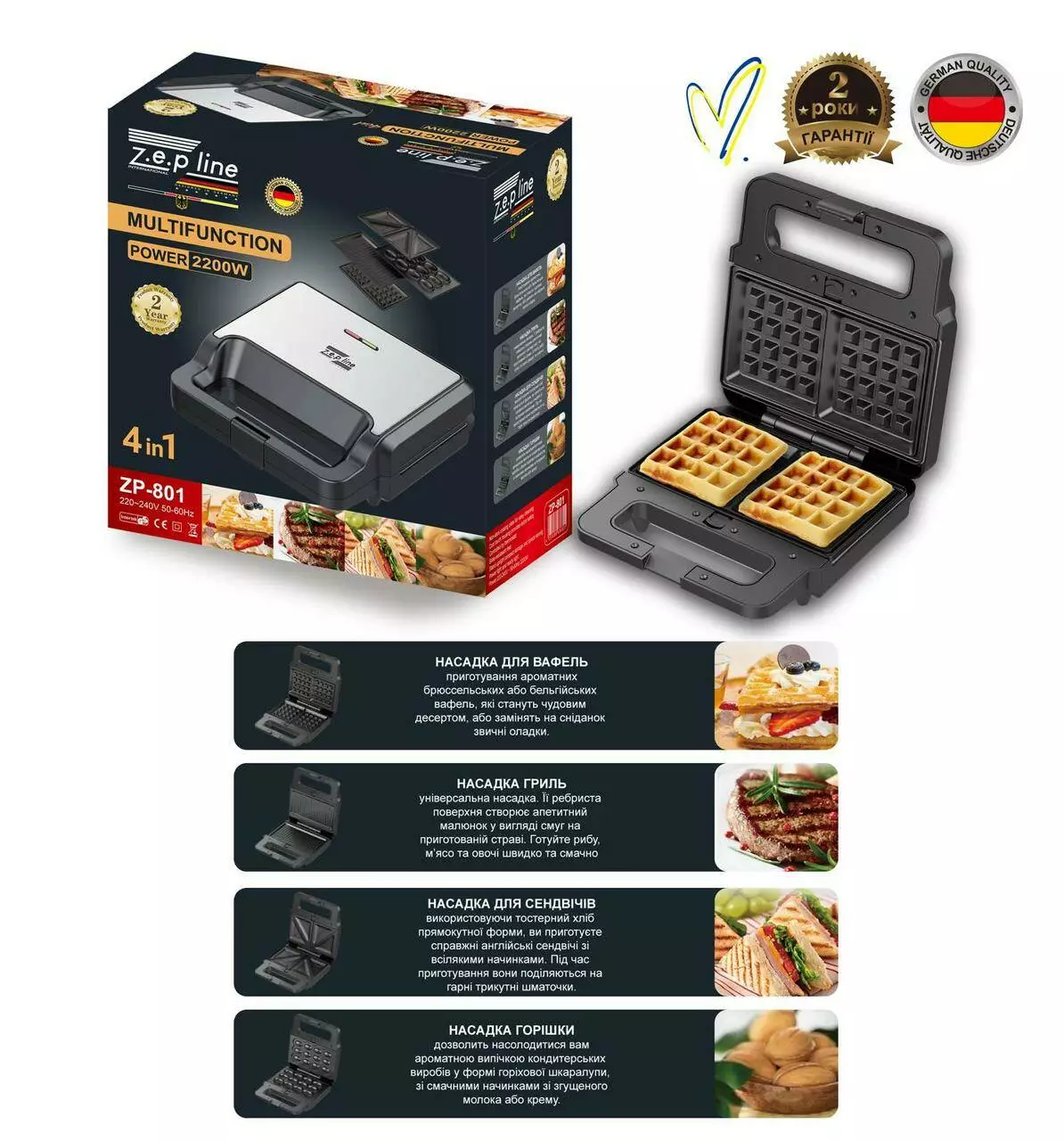 Вафельниця Гриль Сендвичница 4в 1 Zepline ZP-801 (6)