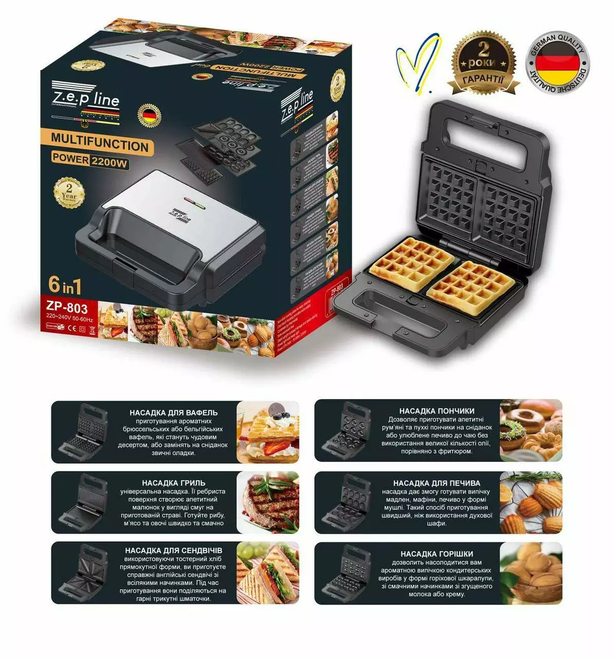 Вафельниця Орешница 6в 1 Zepline ZP-803 (6)