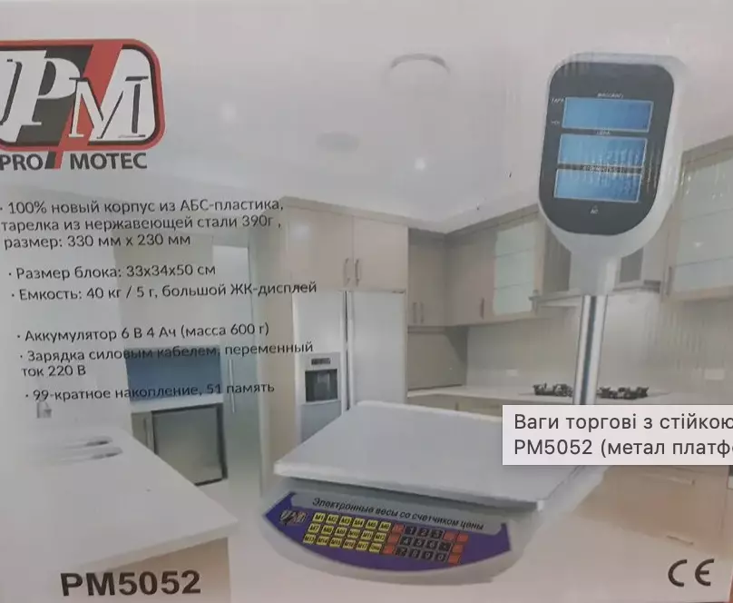 Ваги Торговельні зі стійкою PROMOTEC PM-5052 50кг ( 50KG /6V /5GR / 327*135*37 )