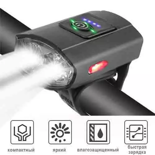 Велофонар 2285-2XPE ULTRA LIGHT, ALUMINUM, індикація заряду,
