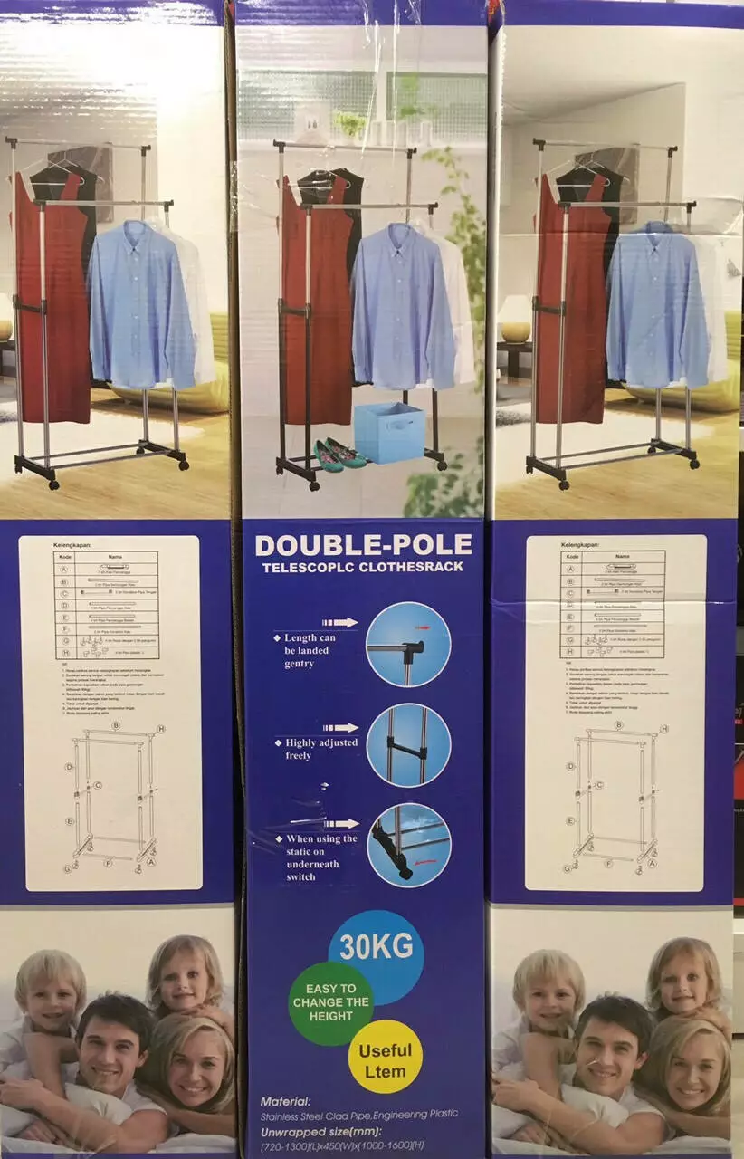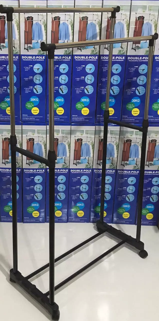 Стійка повністю розбірна. Збирати або розбирати її швидко і дуже просто, для цього не потрібно спеціальних інструментів. Верхні поперечки мають різну висоту, що дозволяє розмістити одяг різної довжини, у тому числі й верхній. З боків перекладин вставляються пластикові заглушки, вони не дадуть плічкам з одягом впасти.