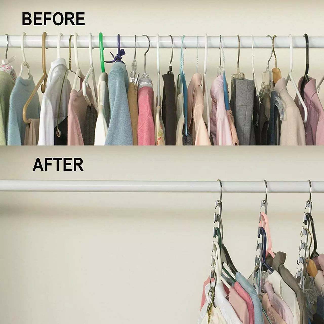 Універсальна вішалка вимагає мінімум місця в шафі і при транспортуванні. В одному наборі міститься вісім вішалок. Кожна вішалка має п'ять невеликих перекладин.