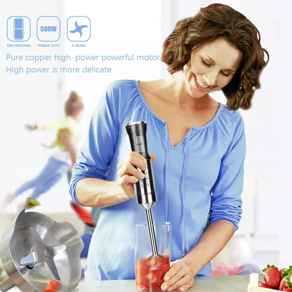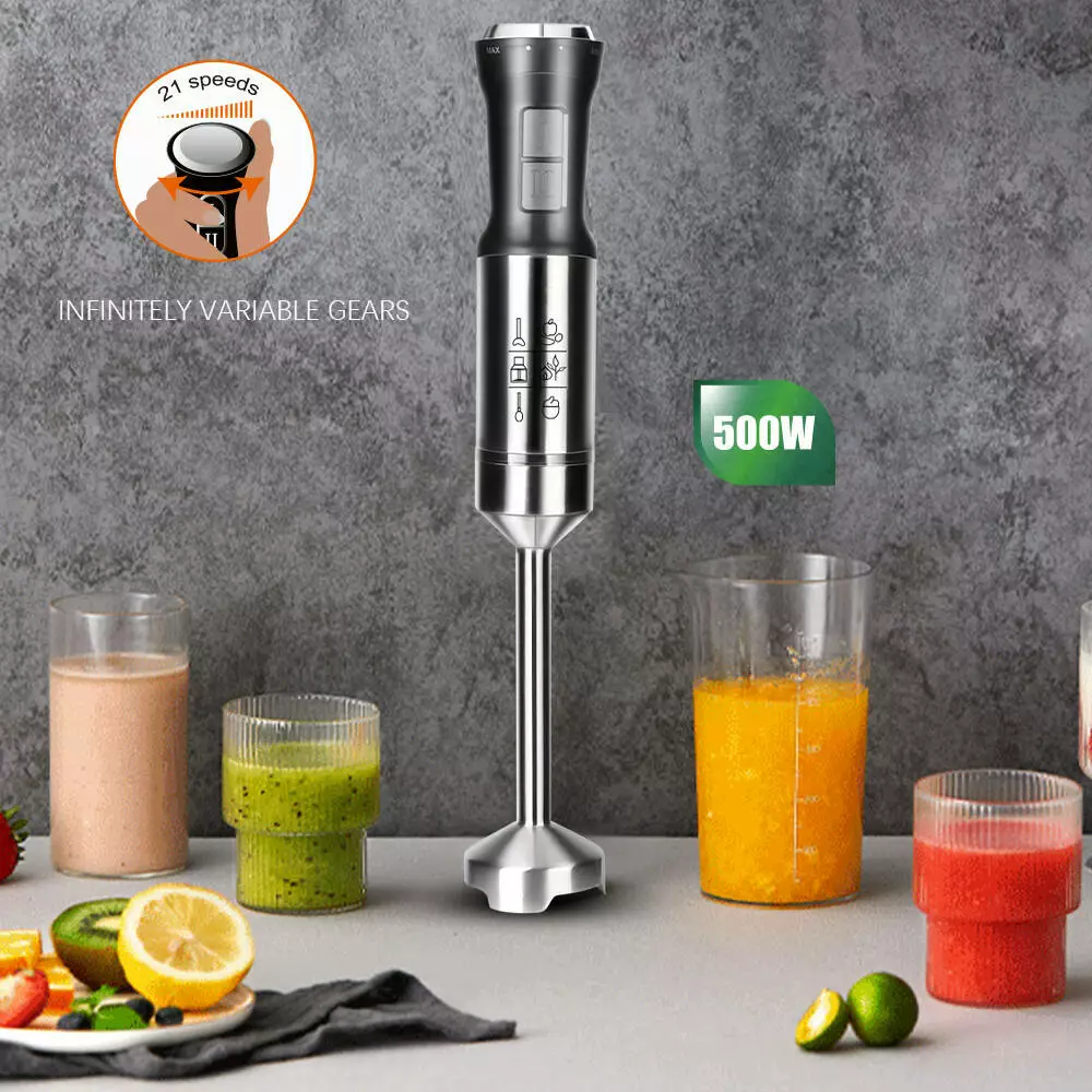 З його допомогою ви зможете легко приготувати різноманітні страви, включно з смузі, супами, соусами, пюре та багато іншого. Потужність 500 Вт дає змогу блендеру легко справлятися з різними інгредієнтами, забезпечуючи швидкий і ефективний результат.
