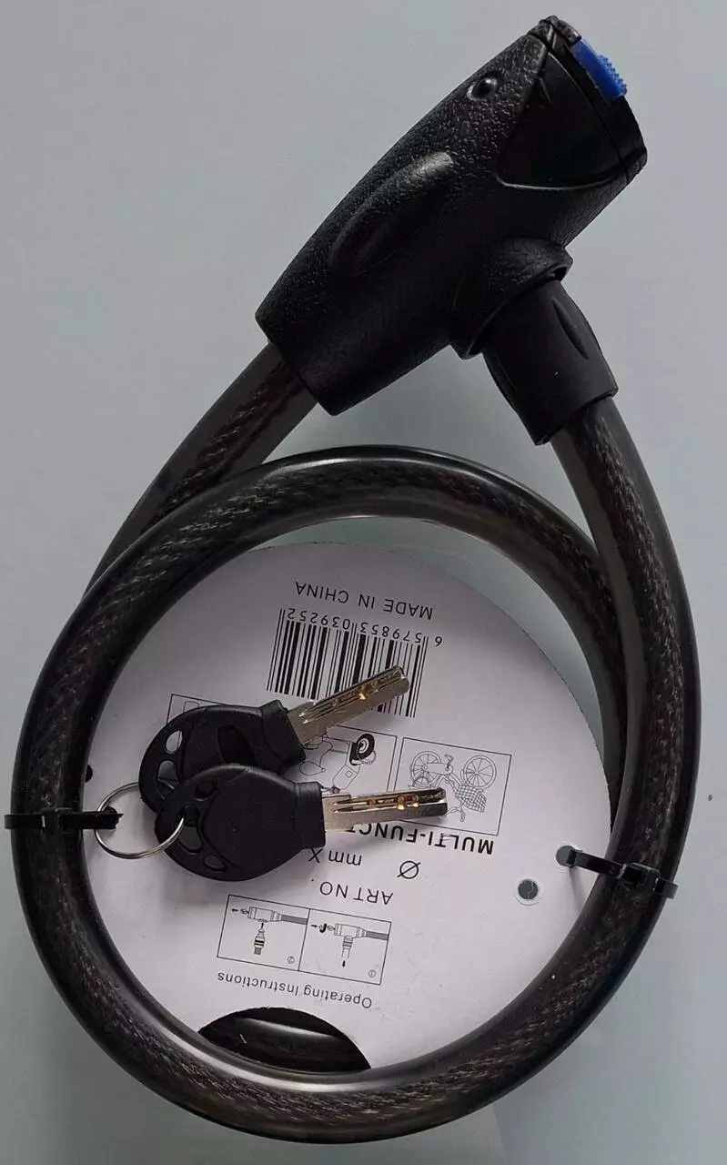 Замок велосипедний 16мм*1000 тросовий, 2 ключі ART-9252 (50)