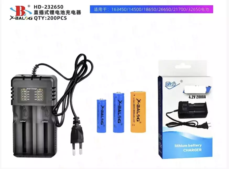 Це зарядний пристрій з мережевим шнуром, призначений для зарядки двох акумуляторів 14500, або 18650, або 26650. Він має високу надійність і зручність використання. Вбудований світлодіодний індикатор дозволяє контролювати процес заряджання та визначити, коли акумулятори повністю заряджені.