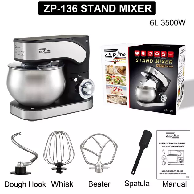 ZP-136 Кухонний тістоміс міксер 4в1 3500 Вт на 6 літрів Чорний (2)