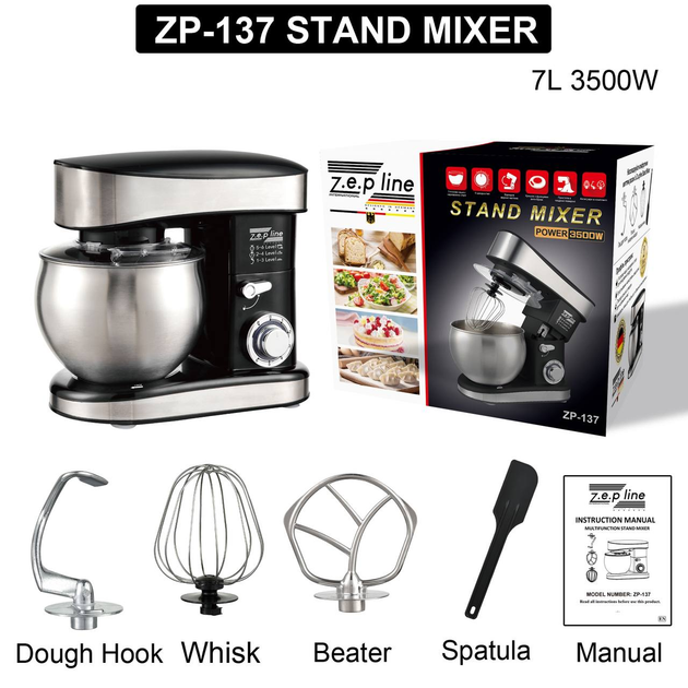 ZP-137 Кухонний тістоміс міксер 4в1 3500 Вт на 7 літрів ЧОРНИЙ (2)
